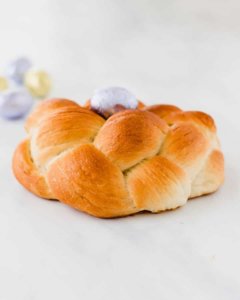 Húsvétkor sok helyen hagyomány a húsvéti kalács sütése. A következő receptben, ahogy a kép is utatja kis fonott kosár kalácsokat hozok nektek.